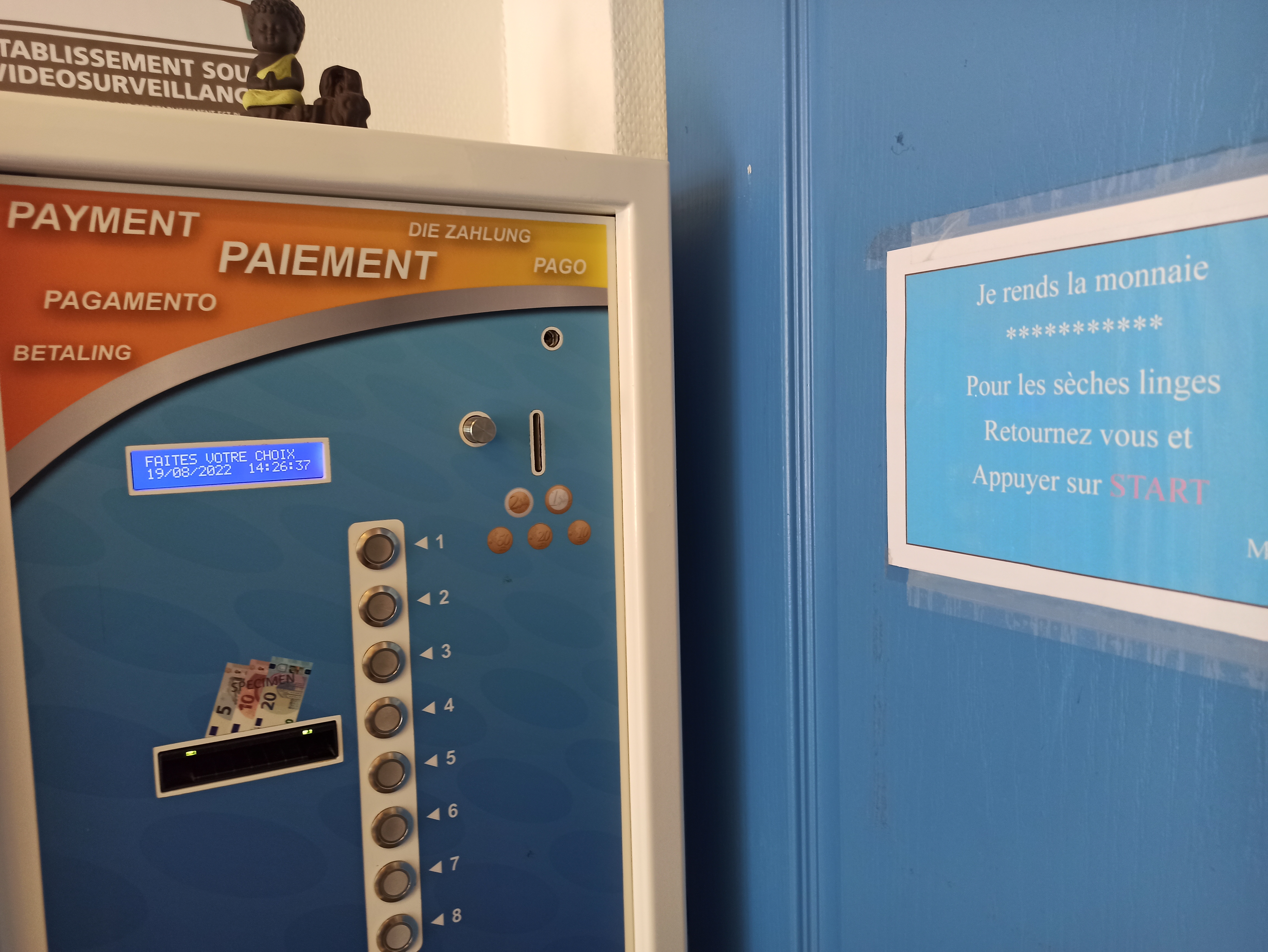 Laverie avec lessive incluse. Cadre totalement atypique, joliment décoré, cocooning sous le signe du bouddhisme. Lavage 8kgs 5€ Séchage 10 min 2€ (l'automate rends la monnaie !) Service rendu a prix correcte dans un cadre agréablement surprenant.
