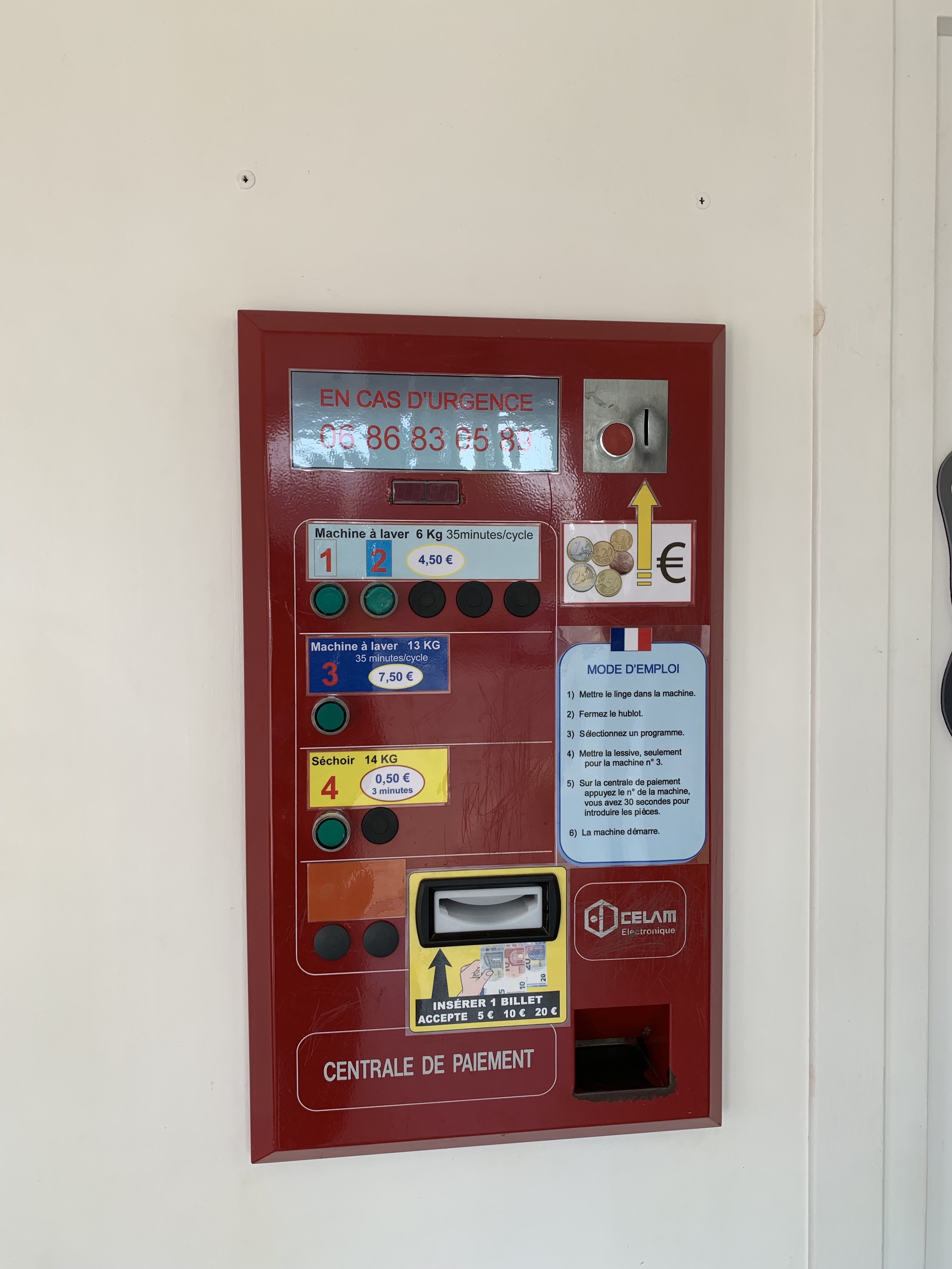 Petite et sympathique laverie avec deux lave-linge de 6kg, un lave-linge de 13kg et un grand sèche-linge. La lessive est intégrée directement dans les petites machines. Le plus gros nécessite des objets supplémentaires que vous pouvez acheter. Un linge de 6 kg nécessite environ 20 minutes au sèche-linge. Les cartes de crédit ne sont pas acceptées.