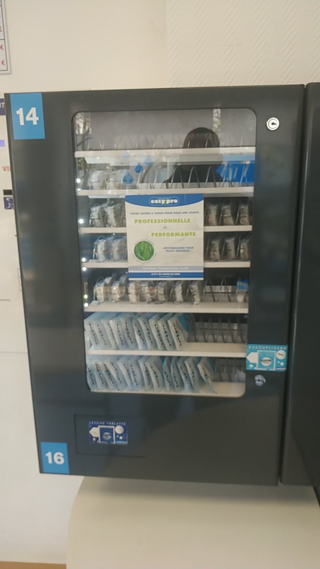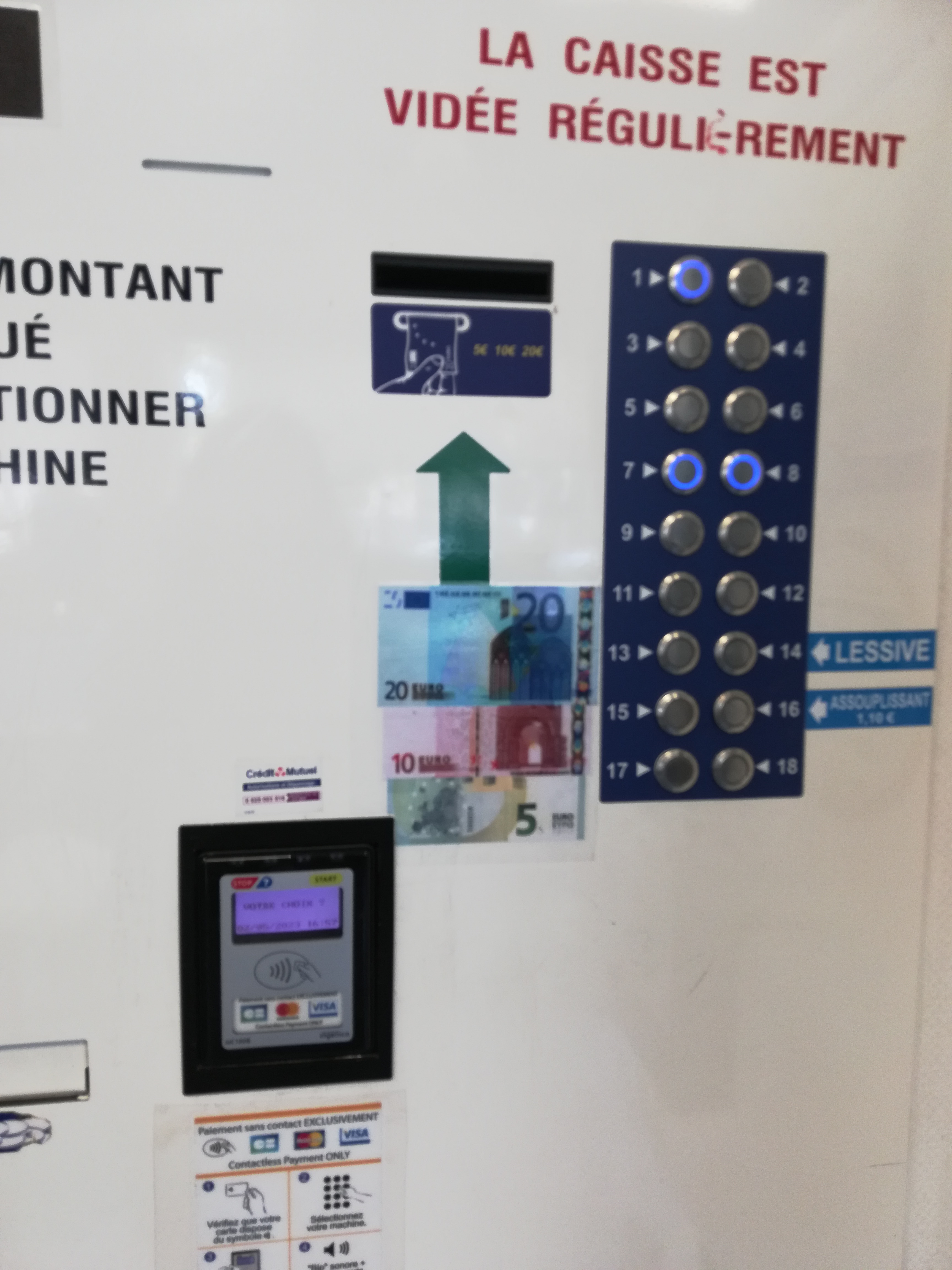 Personnel très sympathique. Savon et adoucissants disponibles. Changer de machine disponible.
