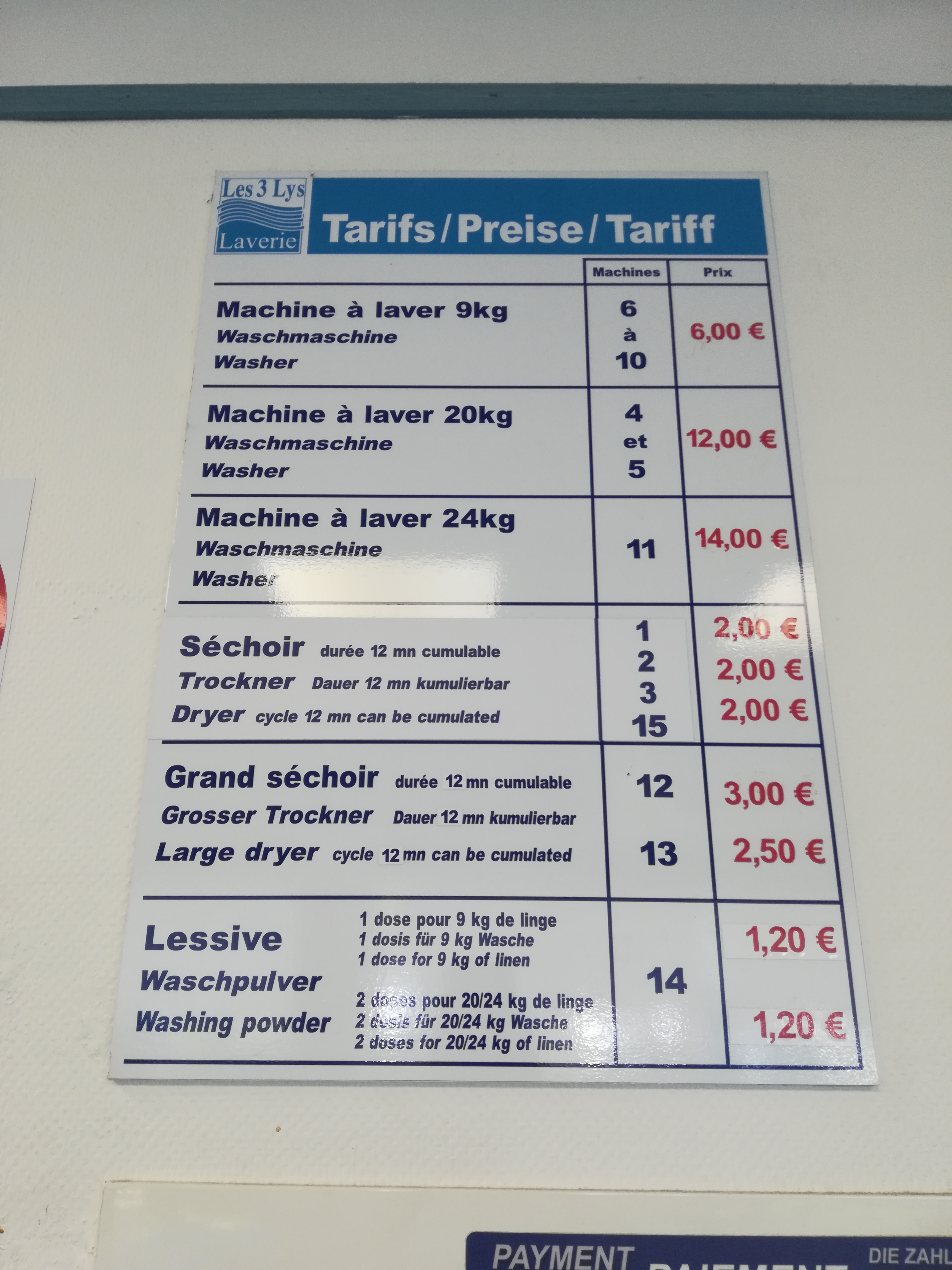 Hygiène irréprochable, machines aux Top.rapport qualité/prix défiant toute concurrence. Produits lessiviels sur place.Merci aux Propriétaires. 😚