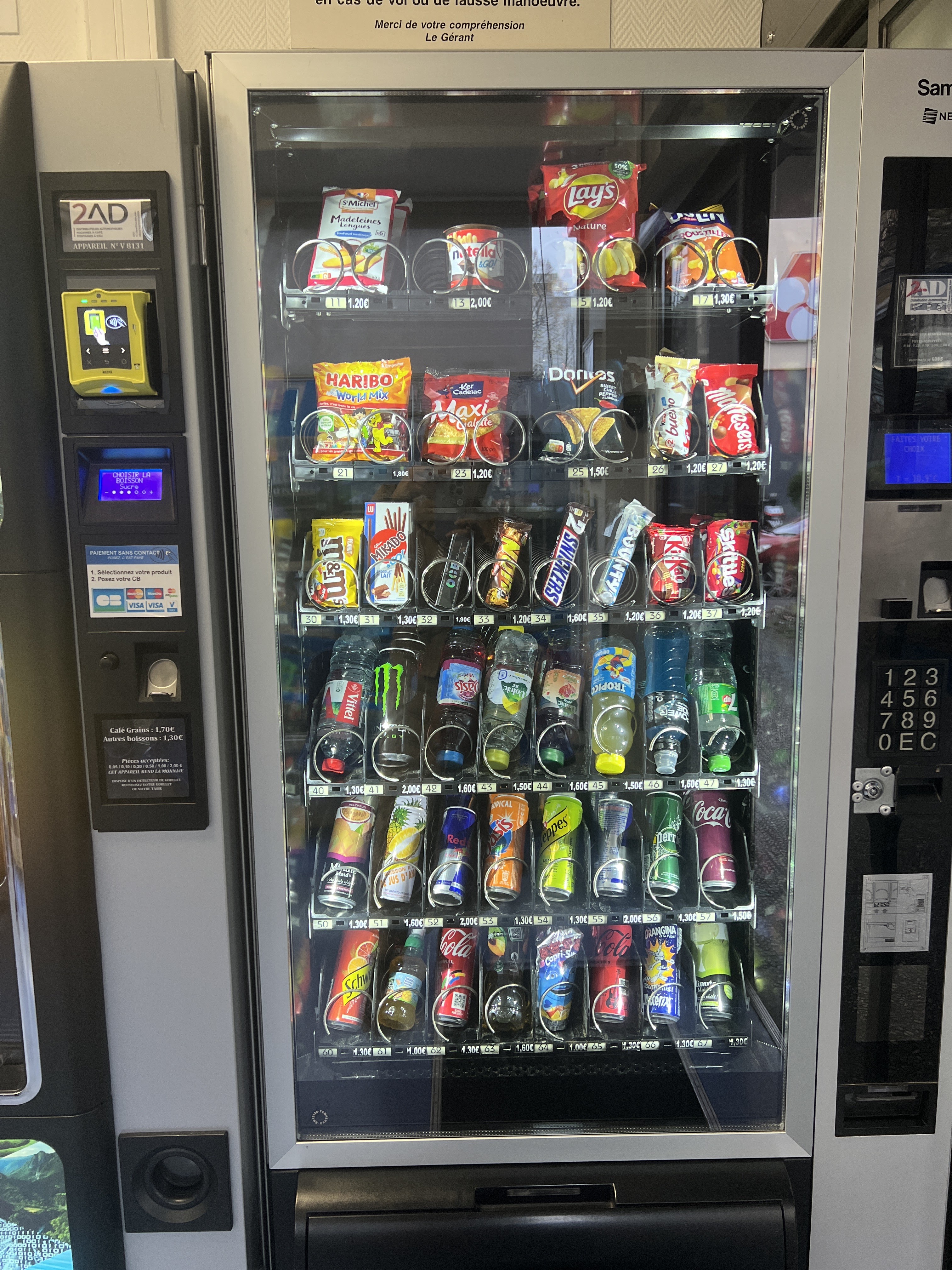 Propre, ouvert le dimanche, instructions trilingues et dispose de deux distributeurs automatiques de cafés et de petites collations.