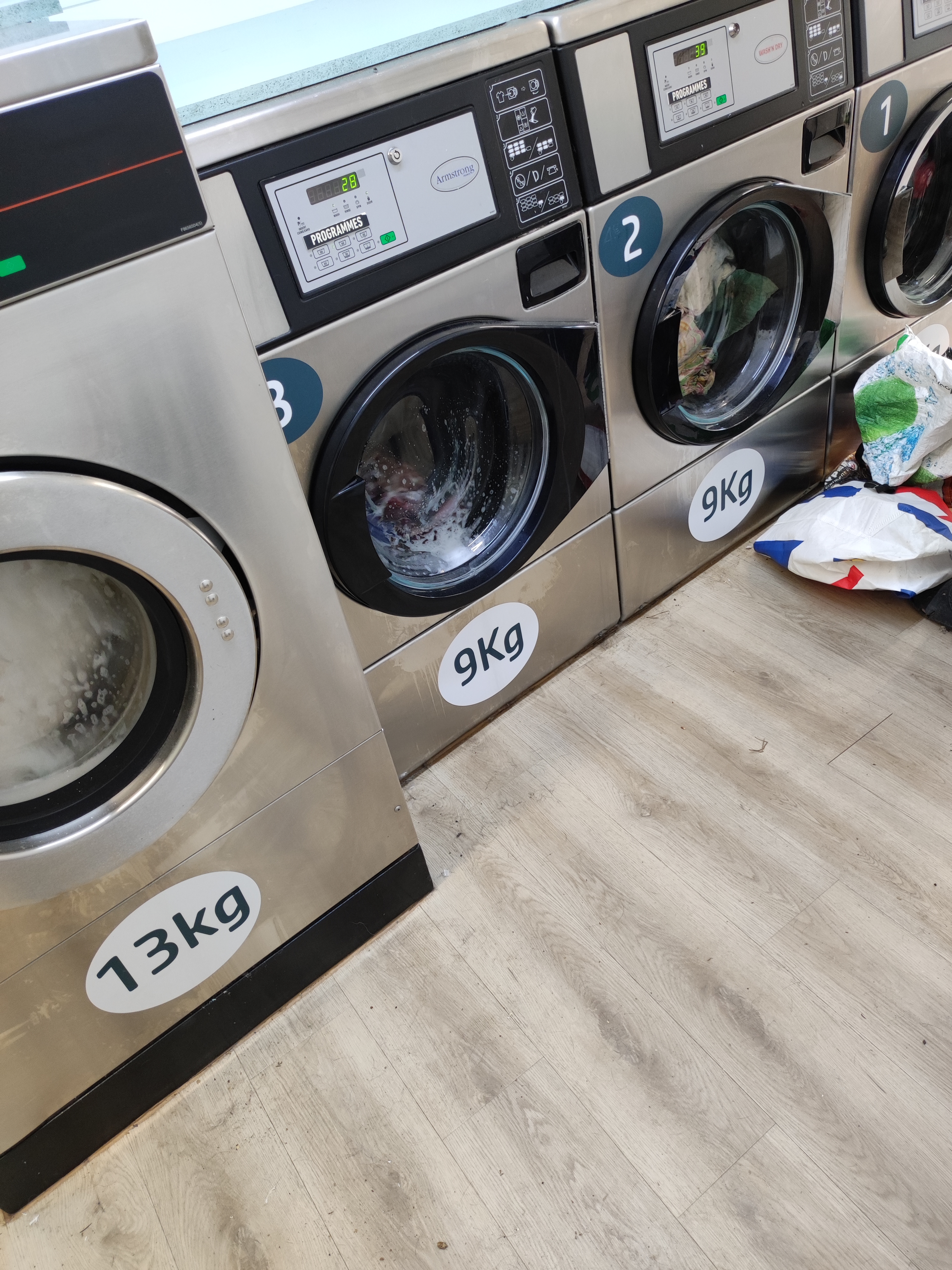 Génial ! Venant ici régulièrement, je trouve ce lieu propre, pratique, machines faciles à utiliser grâce aux panneaux très explicites. Dommage que la panière à linge,à disposition disparaisse quelquefois : etourderie de la part des clients ....?