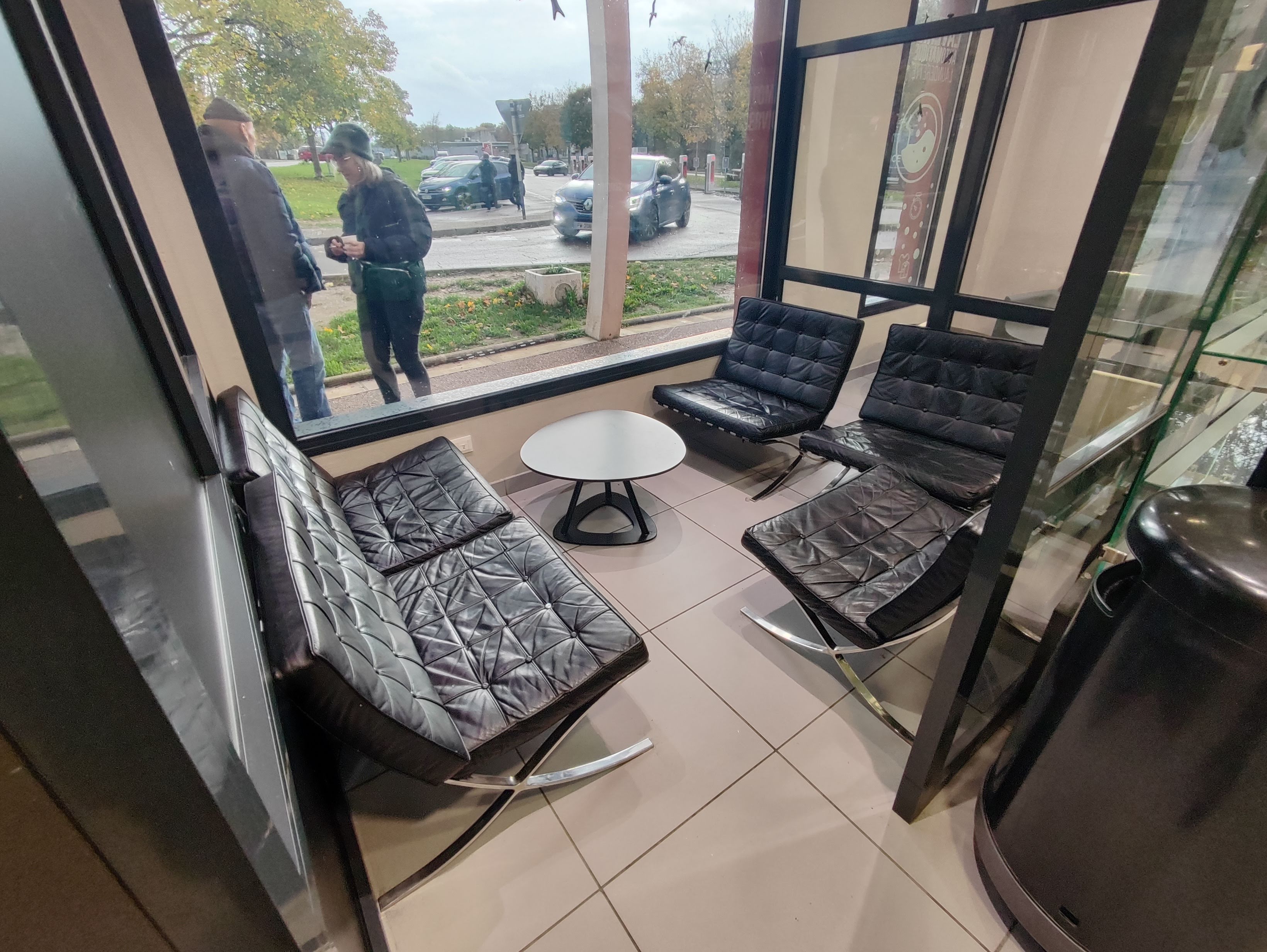Un décor parfait et vraiment bien pensé avec des sièges et la possibilité de regarder la télévision... Une salle d'attente vraiment confortable avec tout ce qui est important à proximité... BRAVO!!! 👍