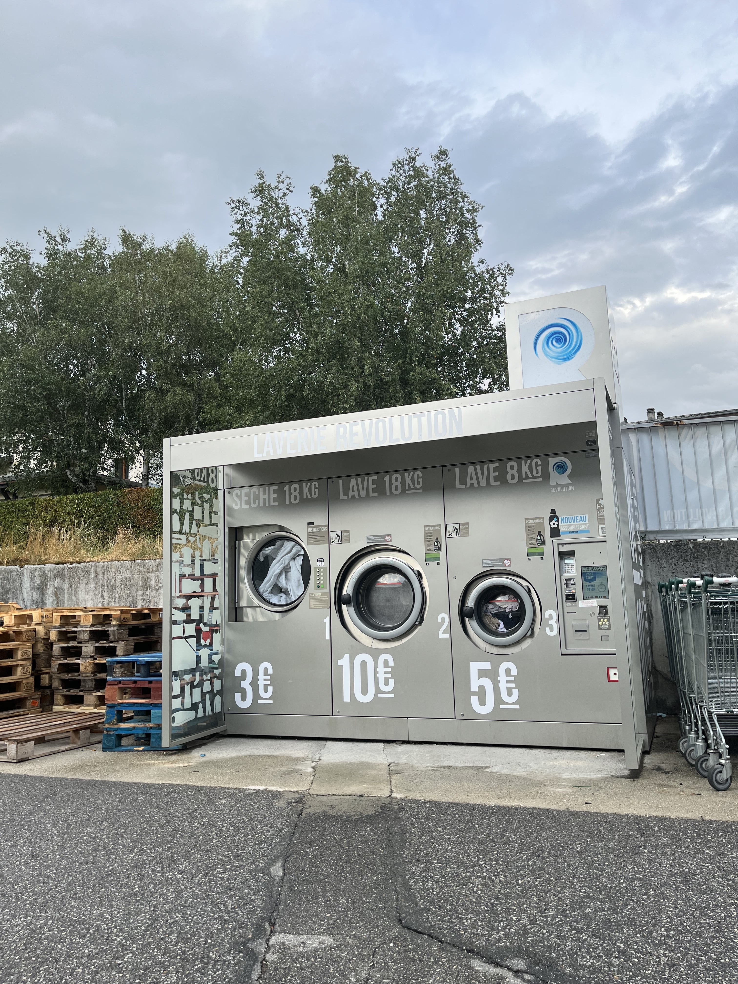 Pas de problème. Laverie en bon état. Pas de soucis côté informatique. Pratique pour le lavage '' de camping... '' Cette station se situe derrière le Leclerc..