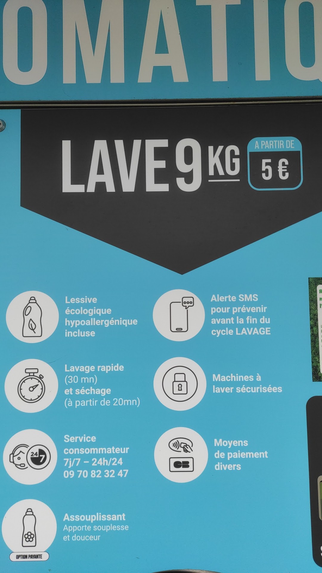 Bouffe pognon !! 26 euros pour 2 machines et 3 sèche linge à 3.00 euro !!! Le linge sèche pas.... en plus tu mets ton numéro de téléphone pour qu'ils te préviennent des que la machine à laver est terminée ils te préviennent pas ....