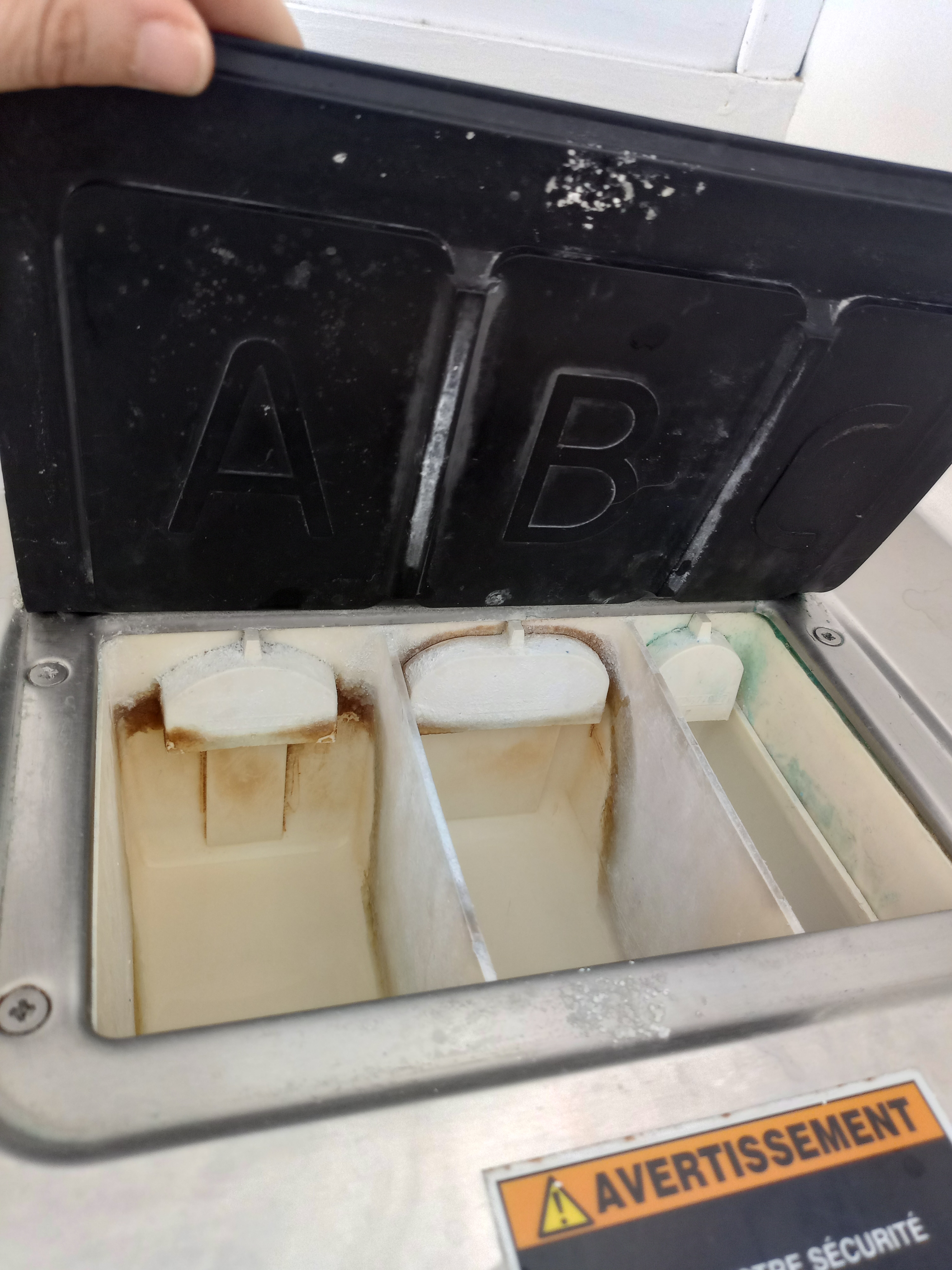 Dans les points positifs : > Horaires pratiques > On peut se garer facilement > Carte bleu acceptée ca facilite tout Dans les points négatifs : > Je pense qu'un nettoyage plus régulier serait apprécié, la photo des réservoirs parle d'elle même... On se demande si on nettoie vraiment nos affaires > Je trouve ca un peu facile d'obliger les clients à acheter 2 doses de lessives alors qu'il suffirait de mieux calibrer la machine. Ca n'a pas loupé pour moi, ni pour la personne après moi, on a été obligées d'acheter 2 doses (cf photo).