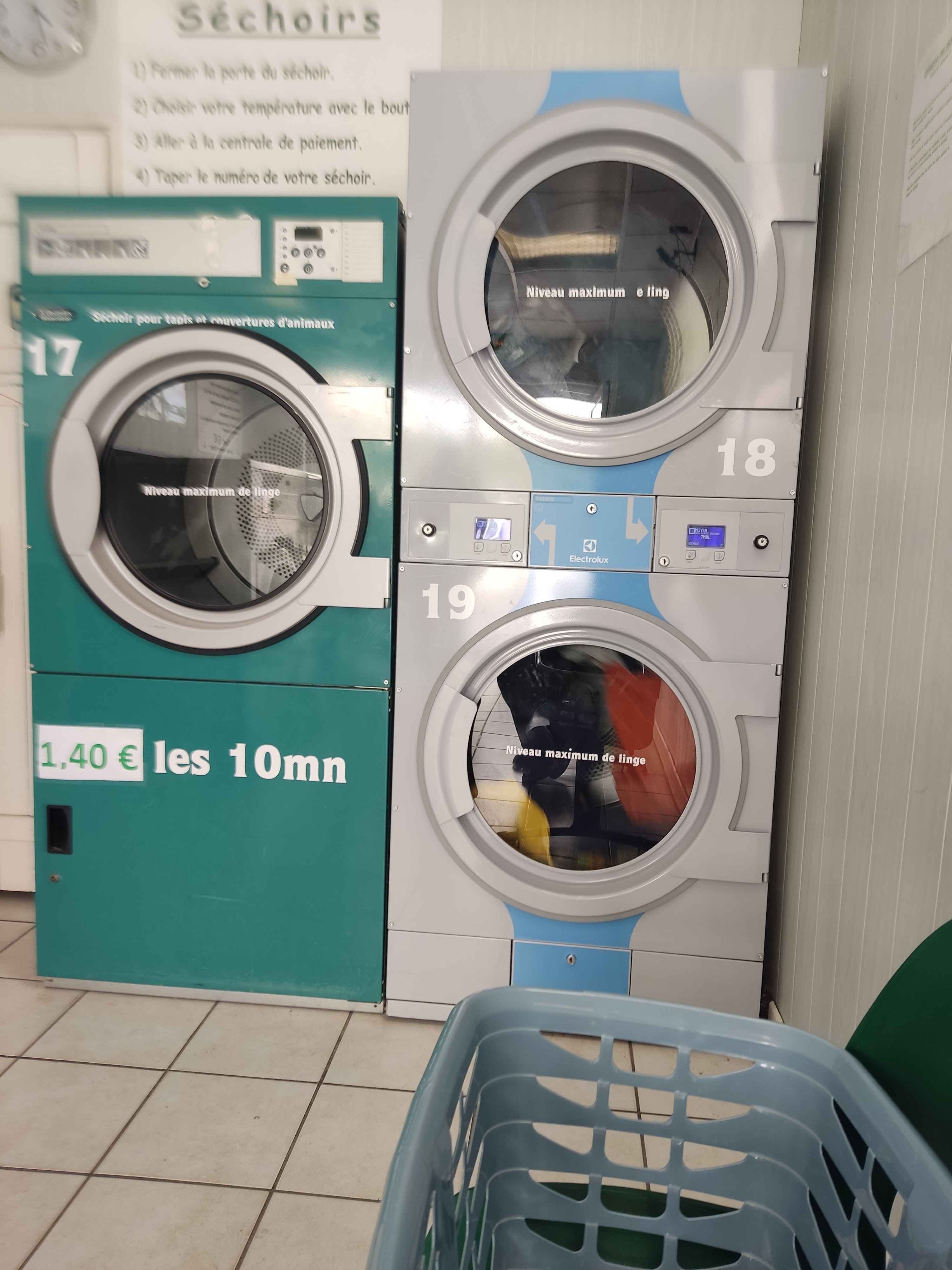 Laverie propre. Aucun problème à signaler. Parking zone bleue juste à côté très pratique. 2 machines 7kg à 5€ 3 machines 18kg à 10€ (dont une réservée aux couvertures d'animaux) 3 sechoirs à 1,40€/10min (dont une réservée aux couvertures d'animaux) dose de lessive à 0,50€ Attention paiement en pièces de monnaie et billets 5-10-20€ uniquement, pas de paiement par carte bancaire, mais je suis allé retirer au distributeur il y en a 2 à moins de 200mètres.